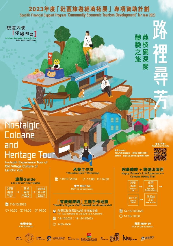 “路裡尋芳”於10月7日至8日及14至15日舉行,活動包括“渡船Guide”導賞活動、“有機健康貓”主題手作地攤、“承槳工作坊”手工藝活動和“碗農體驗 + 路遊山海徑”體驗活動,參加者可以在金秋之際,走入路環探索精彩多樣的海岸文化,探尋文物新貴─荔枝碗船廠片區,細聽荔枝碗由來,昔日船廠的生活故事,體驗手工木船槳製作,當一刻匠人。