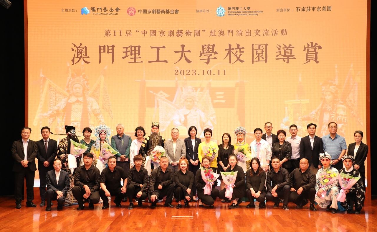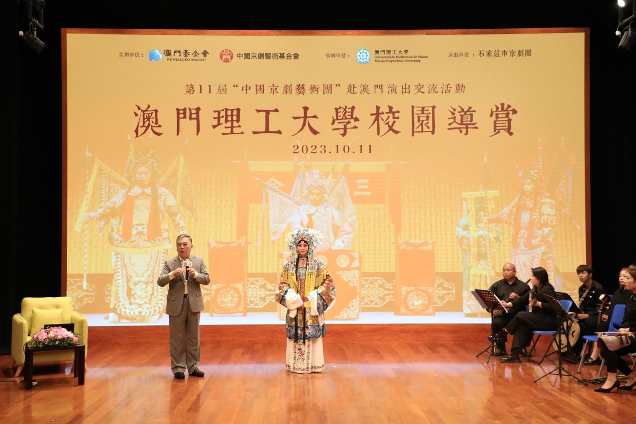 為傳承國粹精華,為大學生及青年搭建藝術交流平台,由澳門基金會、中國京劇藝術基金會主辦,澳門理工大學協辦的“中國京劇藝術團”赴澳門演出交流活動——澳門理工大學校園導賞於10月11日在澳門理工大學禮堂隆重舉行。活動由中國京劇藝術基金會副理事長兼秘書長崔偉主講 “京劇藝術欣賞淺談”,同場由石家莊市京劇團作演出示範,大受歡迎。澳理大師生近四百人出席,掌聲連連,場面熱鬧。