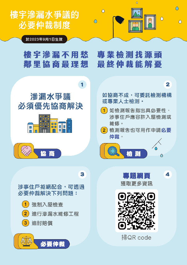 • 《樓宇滲漏水爭議的必要仲裁制度》宣傳海報