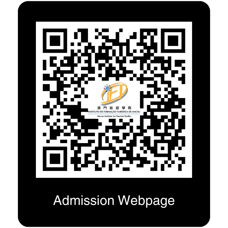 澳門旅遊學院一直致力培育旅遊服務業專才,提供全方位學士、碩士和博士學位課程。2024/2025學年學士學位課程現正接受報名,持有公開試成績、獲高中校長推薦,或符合其他入學資格的本地考生,可率先透過“直接入學”途徑報考,報名期至10月31日,合資格新生更可獲獎學金。請瀏覽招生網頁 https://www.iftm.edu.mo/admission/tc/home/index.html 或掃描二維碼了解更多詳情。