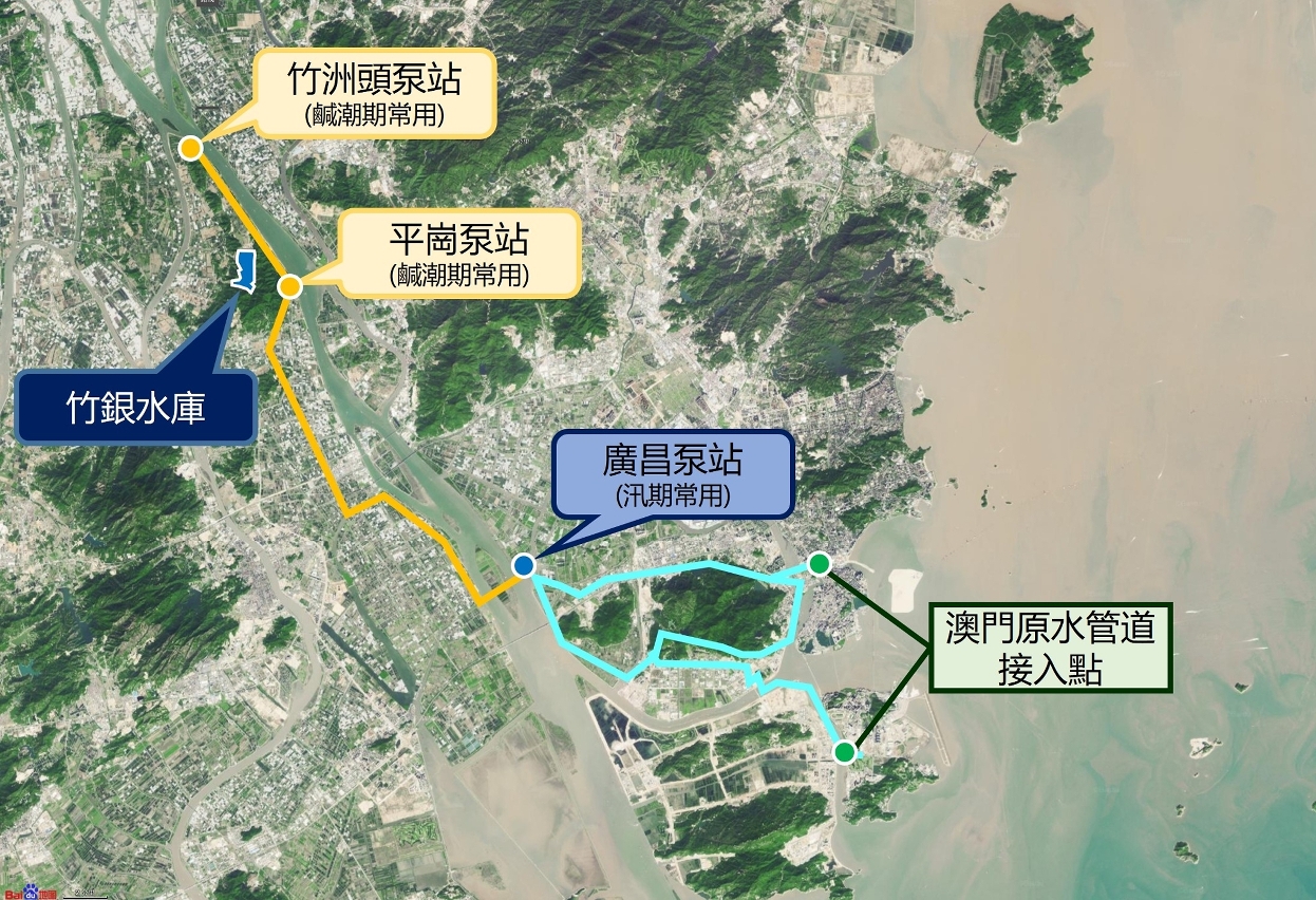 隨著珠江流域進入枯水期,鹹潮上溯情況加劇,珠海供水單位已啟用較上游的平崗泵站取水,以保障供澳原水質量,本澳自來水水質維持綠色低鹹度級別。