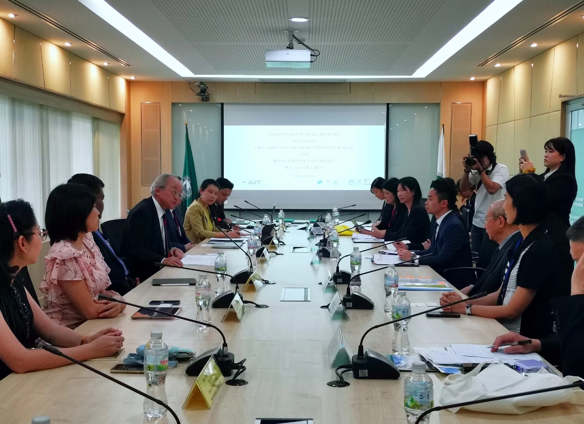 訪問團一行先後拜訪了朱拉隆功大學和亞洲理工學院,獲朱拉隆功大學校長班迪·厄阿鵬(Bundhit Eua-arporn)和亞洲理工學院校長山本和郎(Kazuo Yamamoto)熱情接待,兩校多位學院院長、合作交流事務部門人員出席座談交流。朱拉隆功大學為公立研究型大學,是建校逾百年、泰國最歷史悠久的大學,設有工程、醫學、文學等20多個學術單位,在泰國大學排行榜首,國際排名全球第211位、亞洲第37位,大學影響力排名全球第17位。亞洲理工學院為私立研究生高校,主要開設工程、環境、管理三個範疇碩士、博士學位課程,其工商管理碩士學位課程(MBA)排名泰國第1位、亞洲第21位。澳門高校代表分別介紹各自發展重點與特色課程,並就兩地高校人才培養和師生交流計劃等討論,探討學術和科研等合作的可能性。期間,澳門城市大學與亞洲理工學院簽署合作協議,在互派師生交流、學術研究、探討開展聯合課程、共同舉辦學術活動及出版學術刊物等方面建立合作關係,進一步拓展兩校間的長期合作。