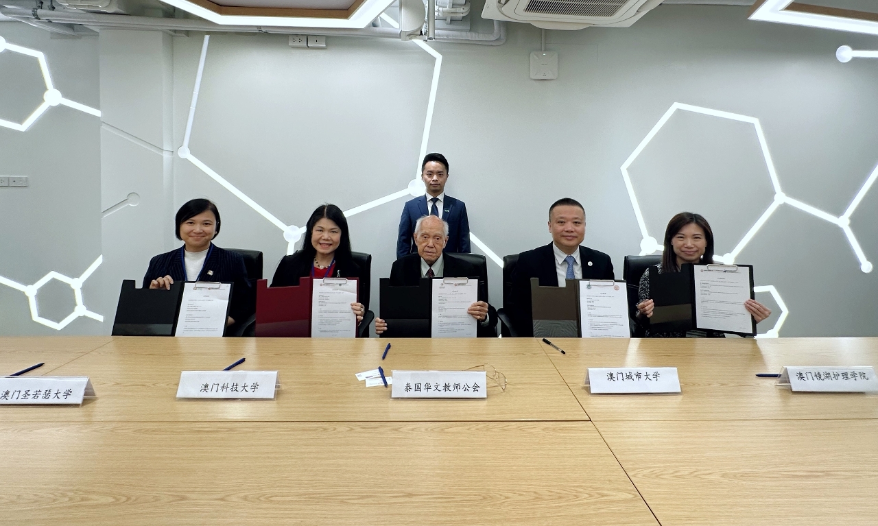 此外,訪問團亦前往泰國華文教師公會和泰國留學中國大學校友總會進行座談交流。泰國華文教師公會由泰國128所華文學校的中文教師組成,以推動當地華文教育發展為目標;泰國留學中國大學校友總會由當地畢業自中國各高校的校友組成,主要為促進泰中兩國的友誼和文化、教育等的交流合作。泰國華文教師公會主席羅宗正、泰國留學中國大學校友總會主席丁佩佩均對訪問團到來表示歡迎,雙方就兩地教育交流、學生升學情況等深入探討。澳門7所高校於此行分別與泰國華文教師公會簽署了合作協議,以加強澳門高校面向泰國學生的宣傳,為其提供更全面的升學資訊,並支持學生到澳門升學。