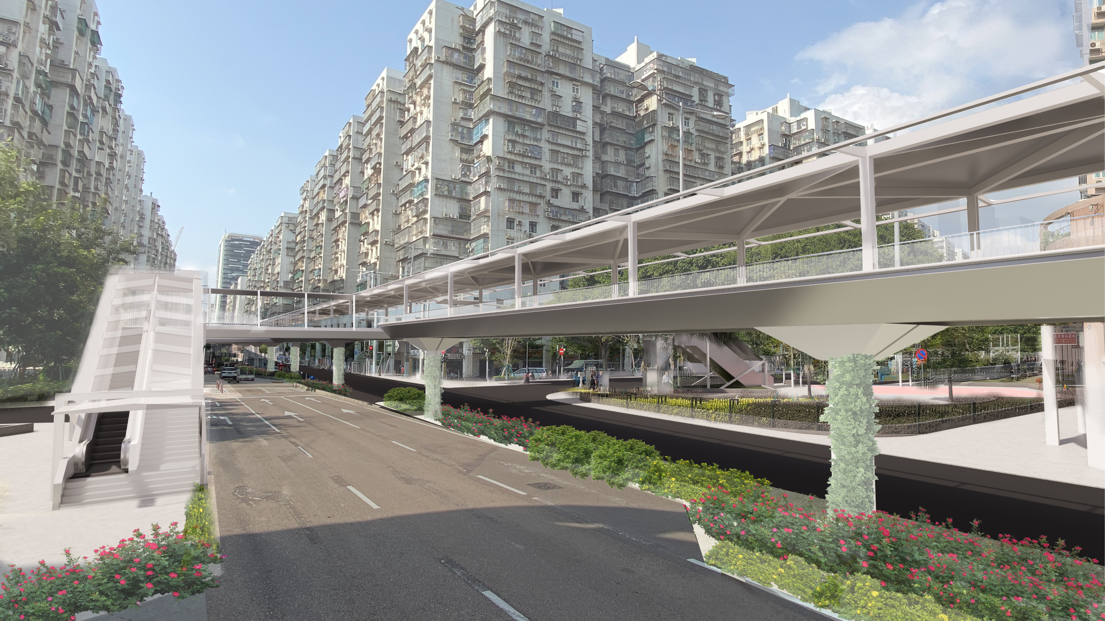 特區政府近年不斷優化過路設施,為市民提供更安全的綠色出行環境,同時透過空中走廊、步行系統等設施縮減社區之間的步行距離。