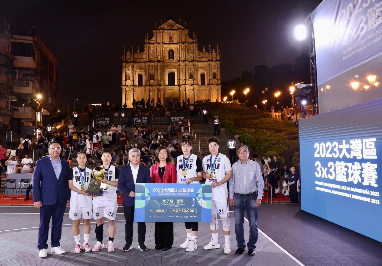 由澳門特別行政區政府體育局及澳門星娛樂製作有限公司主辦,中國澳門籃球總會及齊睿體育活動策劃有限公司協辦,永利渡假村(澳門)股份有限公司贊助的《2023大灣區3x3籃球賽》,今(29)日於大三巴牌坊上演澳門總決賽壓軸日賽事,最終由男子組常州MDMX及女子組戎福控股戰狼聯奪冠。