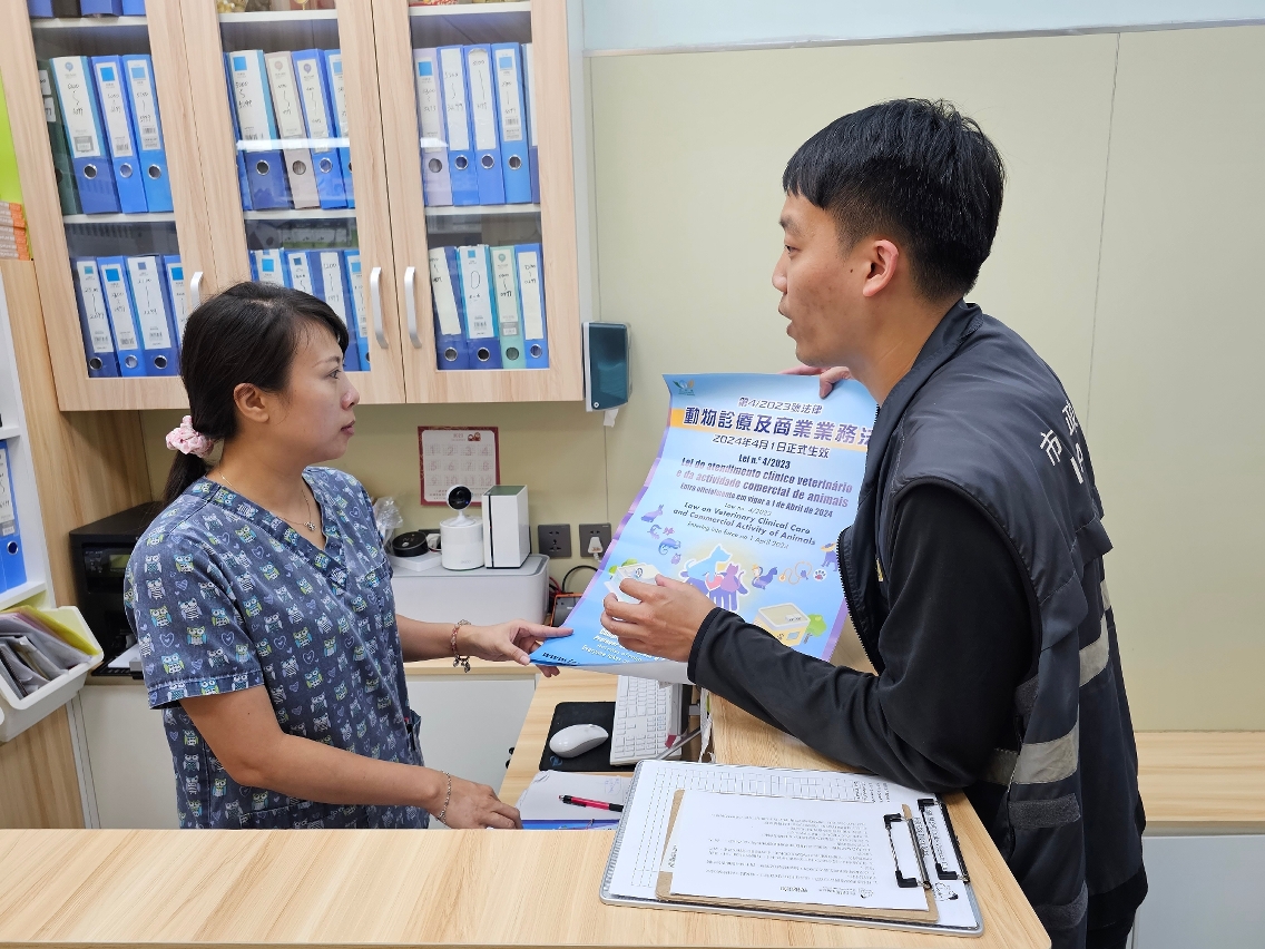 市政署持續開展《動物診療及商業業務法》普法工作,於日常巡查期間,加強向相關業界說明獸醫專業資格認可要求,以及法律所規範的四類動物場所設立的准入及監管制度,以便業界在2024年4月1日法律生效前作好過渡安排。