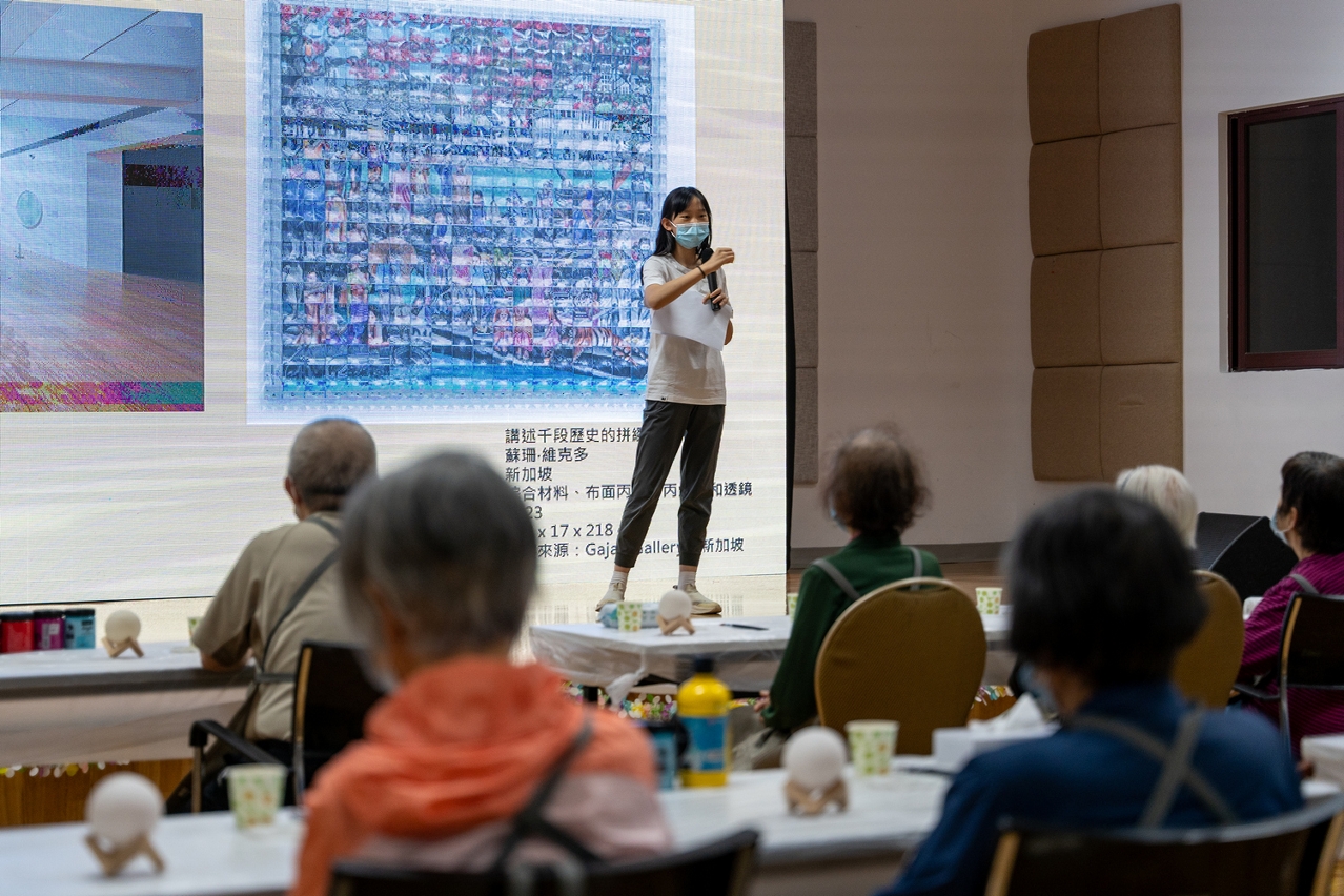 為讓學員們學以致用,特設與“藝文薈澳:澳門國際藝術雙年展2023”聯乘舉辦的實踐活動“藝賞隨意門”,學員與多個社群分享“藝文薈澳”展覽精粹,並舉辦藝術創作工作坊,讓未能前往展館參觀“藝文薈澳”的人士共賞藝術之美。學員們先後前往澳門弱智人士家長協進會康樂綜合服務中心、星光舍、母親會安老院、澳門明愛華暉康復綜合服務中心及菩提長者綜合服務中心,並圍繞“藝文薈澳”主場展,以講故事搭配圖片展示的形式,向院友介紹展覽背景與參展藝術品,分享對作品的見解,共同感受藝術的美好;在導師指導下,學員亦與院友一同完成藝術創作工作坊,共有近百名院友參與其中,投入探索藝術的趣味之旅。相關工作坊得到銀河娛樂集團、美高梅及澳娛綜合度假股份有限公司的支持。