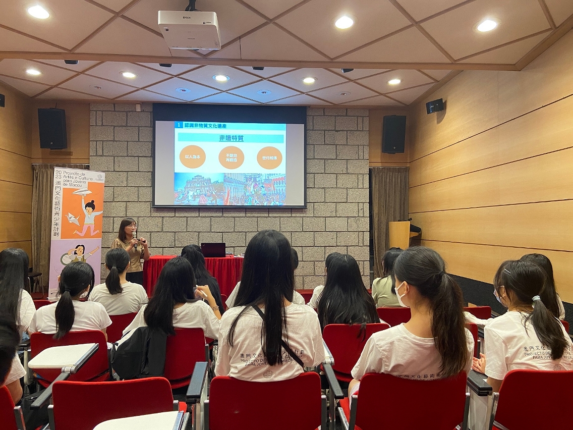 由文化局主辦、澳門中華新青年協會承辦的首屆“澳門文化藝術青少年計劃”,學員正在開展多元的文化藝術學習旅程,7月至10月期間,學員已學習多項的文化課程,在課堂外,更包括導賞觀摩、欣賞演出、實地考察及實踐活動等豐富體驗,多角度感受文化藝術的美好,擴闊文化視野。