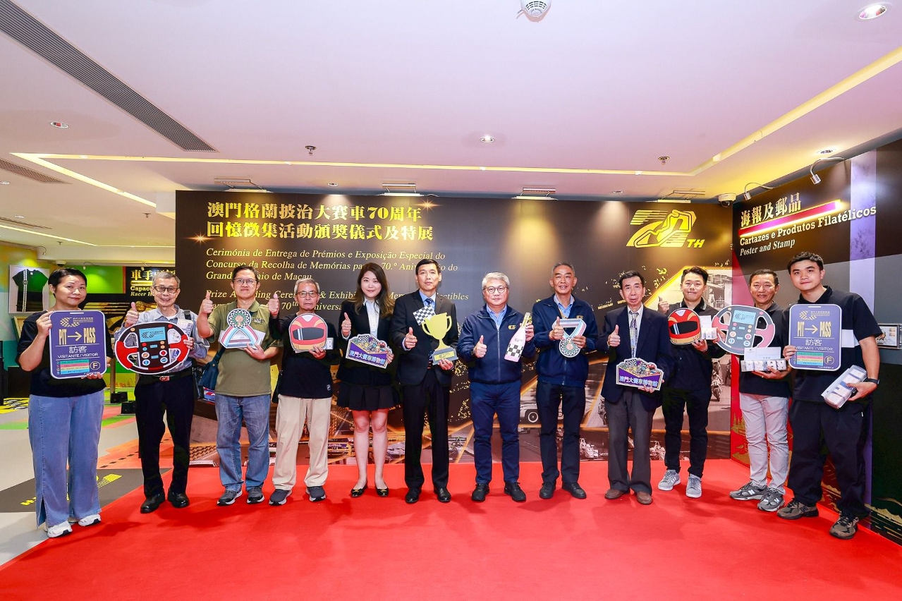 “澳門格蘭披治大賽車70周年回憶徵集活動”頒獎儀式於今(9日)在澳門大賽車博物館舉行,展品於即日起至明年1月底在館內展出。此外,全新形象的精品廊亦於今日揭幕。旅遊局期望藉舉辦系列特別活動延續賽車月的熾熱氛圍,與大眾同賀第70屆澳門格蘭披治大賽車。