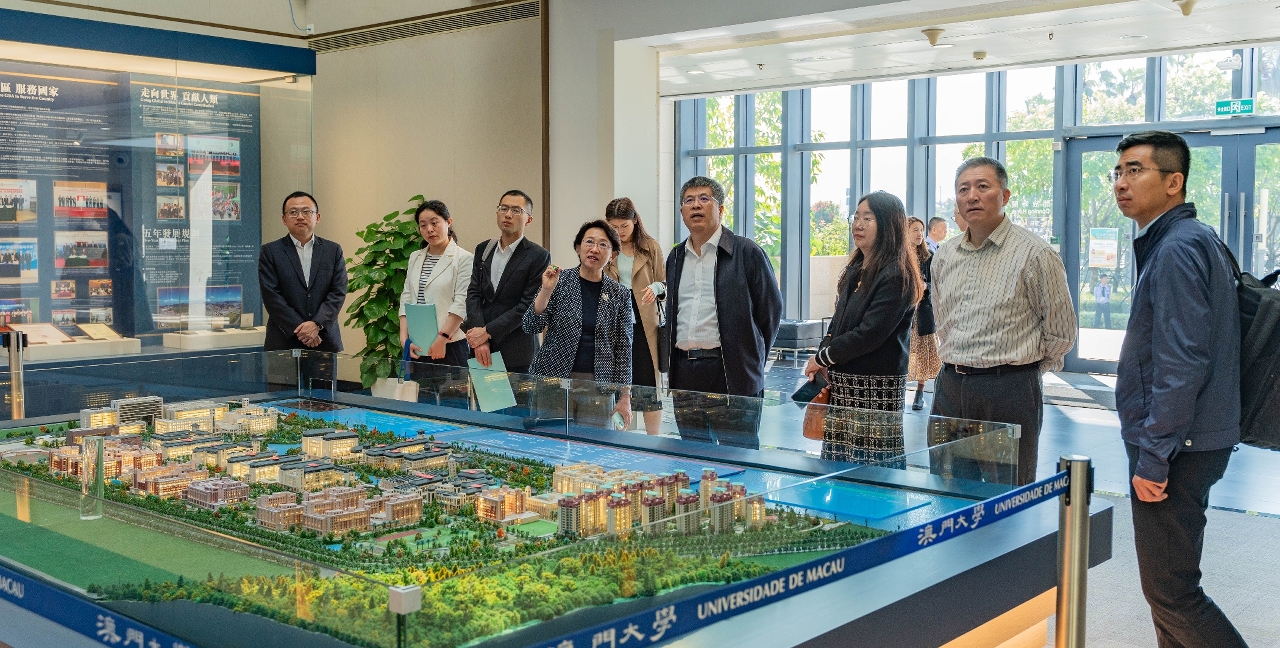代表團首先參觀了大學展館,徐建向代表團介紹了澳大的歷史沿革和科研佈局,強調澳大正積極發揮“特區大學、特殊使命、特別關懷、特色辦學”的獨特優勢,培養更多人才,創造更多科技成果,助力澳門特區經濟適度多元化和融入國家發展大局。