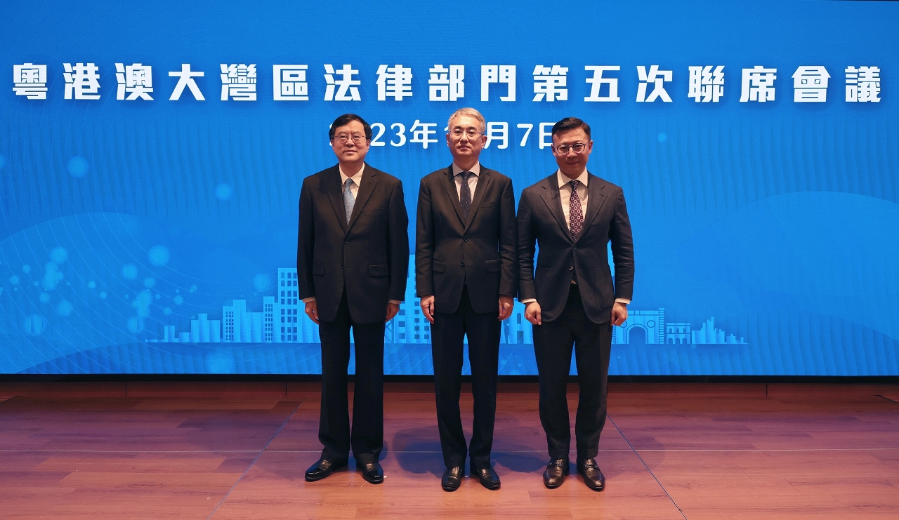 出席會議的三地主要代表還包括:廣東省司法廳廳長陳旭東、副廳長林楚明;香港特區政府律政司副司長張國鈞;澳門特區政府法務局局長梁穎姸等。