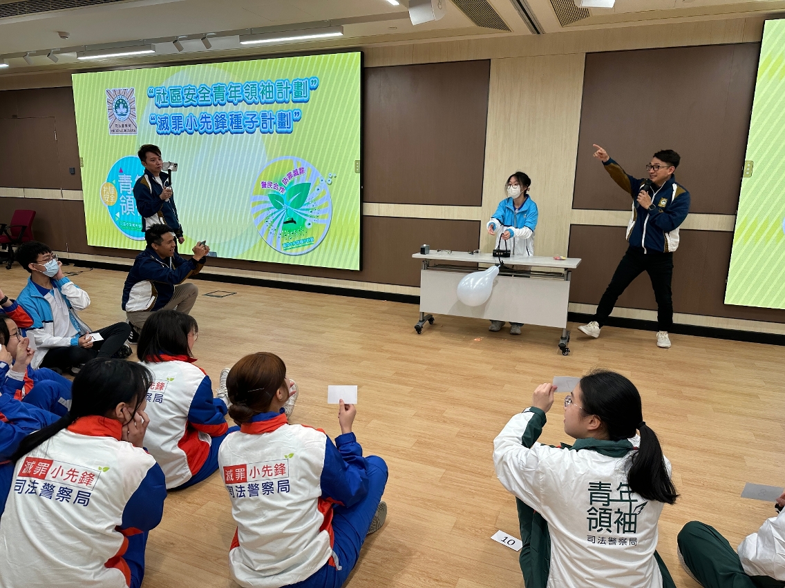 香港警務處公共關係部少年警訊組總督察胡世耀率領少年警訊會員到訪參觀司法警察學校,並與司警局“社區安全青年領袖計劃”及“滅罪小先鋒種子計劃”學員會面交流,兩地青年互相分享參與警方防罪宣傳工作的心得和體會,促進對兩地警務工作的認識,並建立了友誼。
