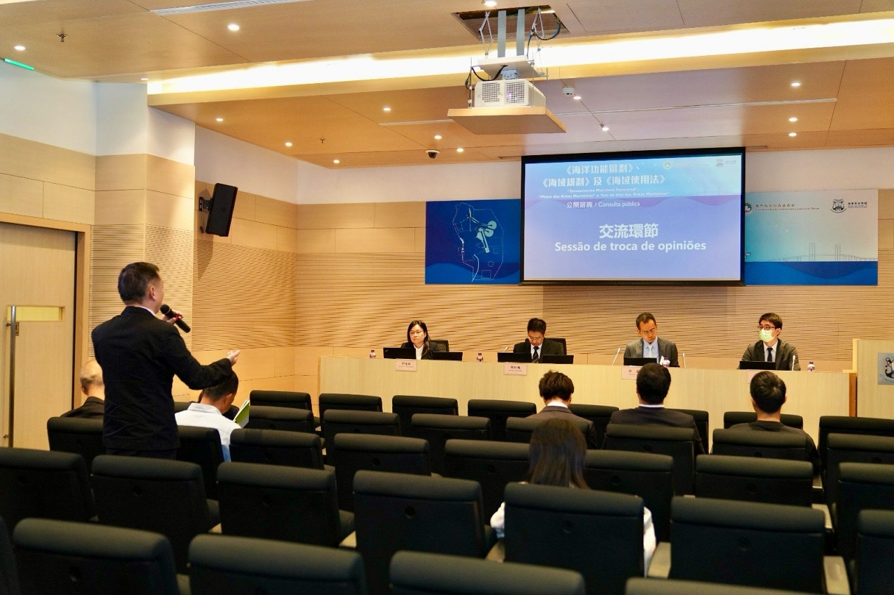 特區政府現正就《海洋功能區劃》、《海域規劃》及《海域使用法》開展為期50天的公開諮詢,為讓社會各界了解特區政府在海域管理方面的政策取向及立法構思,並廣納民意,社團及業界專場諮詢會和兩場公眾諮詢會已分別於2024年1月5日、7日及10日舉行,合共約60人出席、30多人次發表意見和建議,海事及水務局感謝社會各界和市民提供寶貴意見。