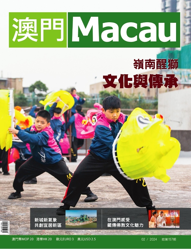 《澳門》雜誌(中文版)第157期現已出版。今期精彩專題包括:介紹新城A區落實宜居願景的建設概念、「吉祥殊勝――故宮與扎什倫布寺珍藏文物展」、舞獅藝術的傳統和新貌;同時亦分別專訪了兩家轉型創新的澳門小店,和第一家成功在香港上市的澳門科技公司。
