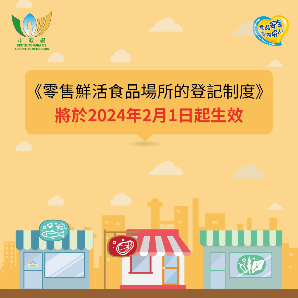 過渡期方面,若持有效的2023年度零售蔬菜、肉類或漁獲准照的場所,視為已按登記制度作出登記,准照持有人無須向市政署提出2024年度准照續期申請。此外,行政法規生效前處於審批程序中的准照申請,亦視為登記申請。市政署已向有關商戶發出公函及短訊,通知其於2月1日至7日辦公時間內到市政署食品安全廳領取登記證明。