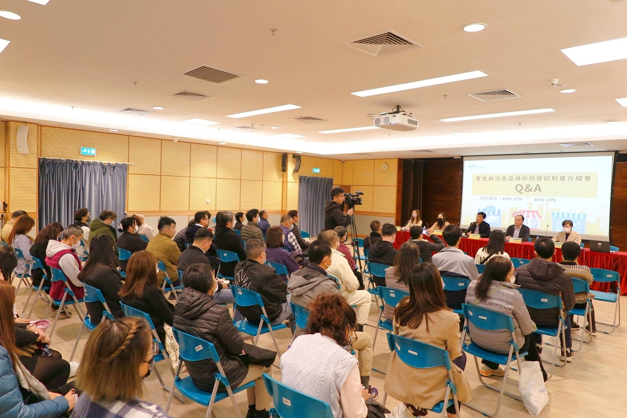 《零售鮮活食品場所的登記制度》將於2月1日起正式生效。為推動法規有效落實,市政署先後舉辦五場介紹會,向逾350名市民、業界代表等講解登記制度的制訂目的、規範內容、申辦手續,並聽取意見及解答查詢,加強相關持份者對“登記制度”的認識及瞭解。