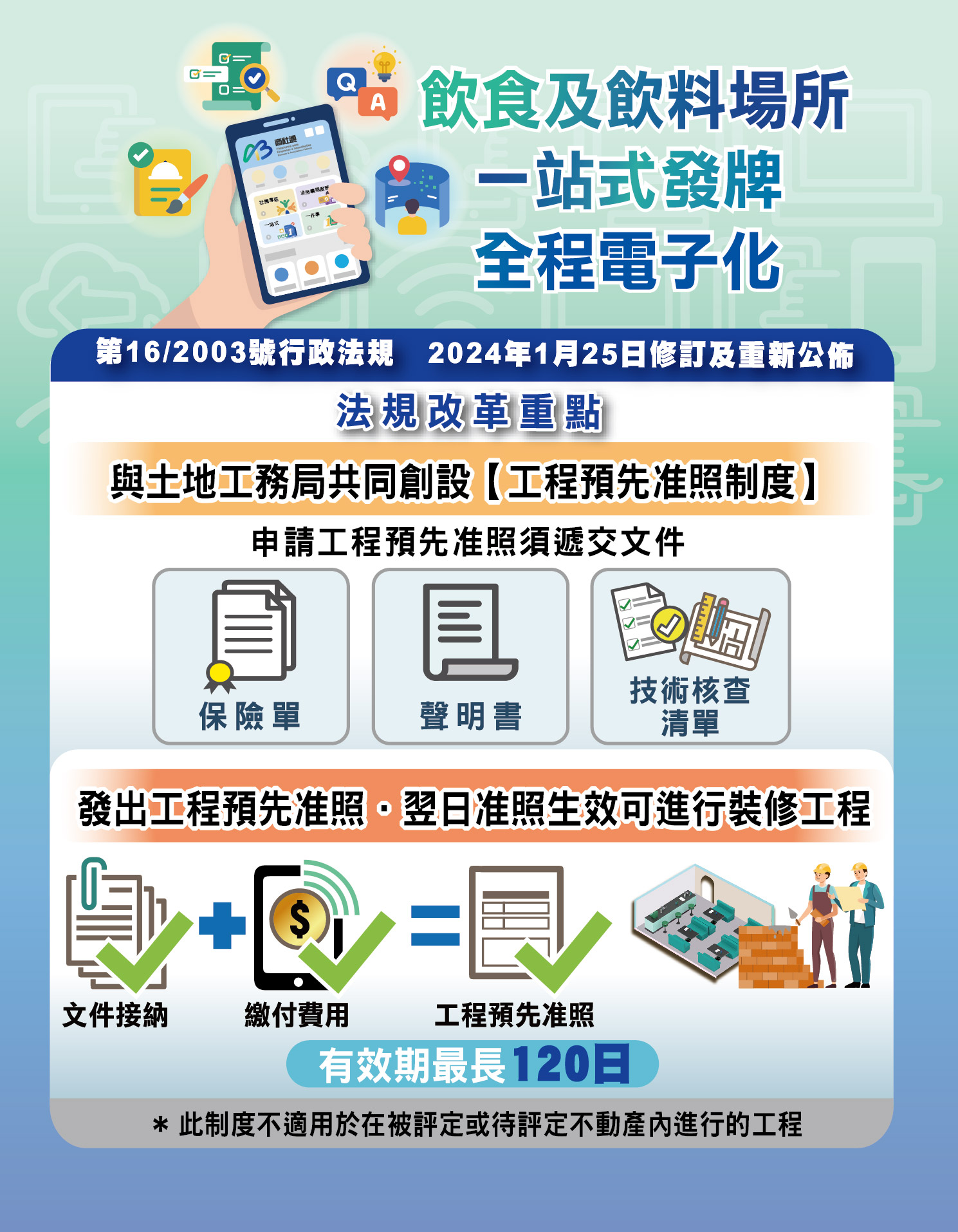 第16/2003號行政法規《飲食及飲料場所一站式發牌程序》已透過2024年1月15日公佈的第2/2024號行政法規作出修訂,並於2024年1月25日生效。