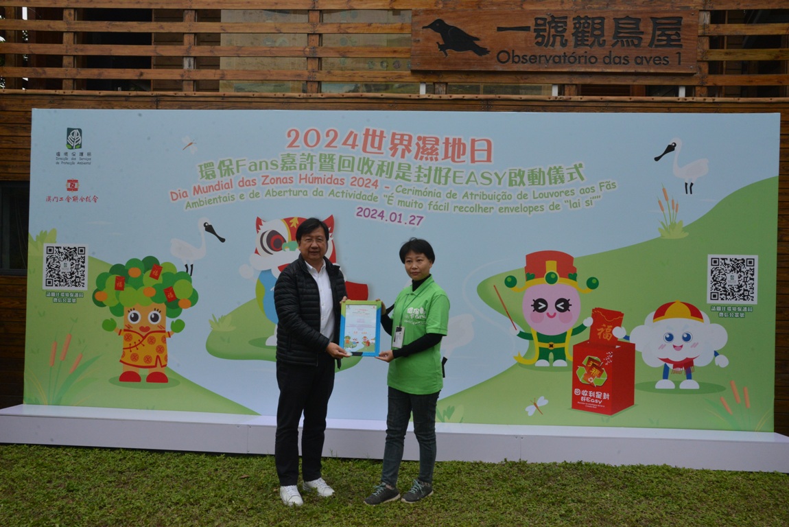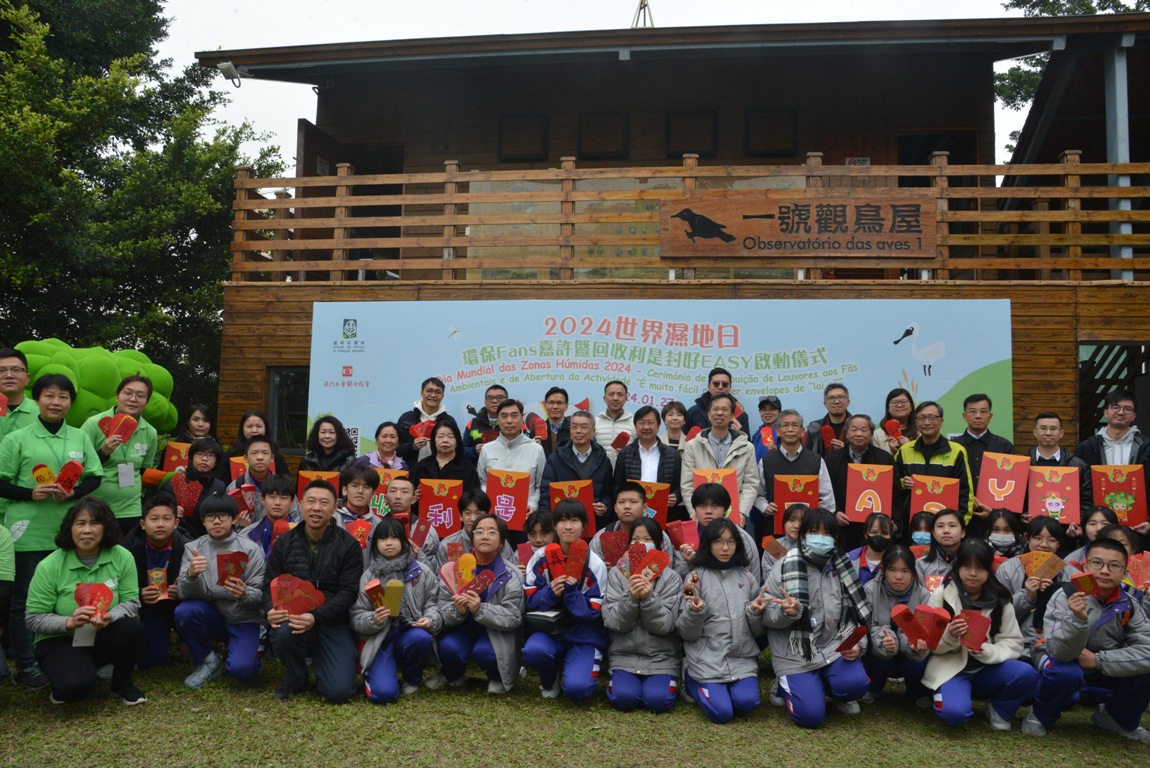 環境保護局為響應2月2日的世界濕地日,於2024年1月27日在路氹城生態保護區舉行2024世界濕地日—環保Fans嘉許暨回收利是封好EASY啟動儀式。