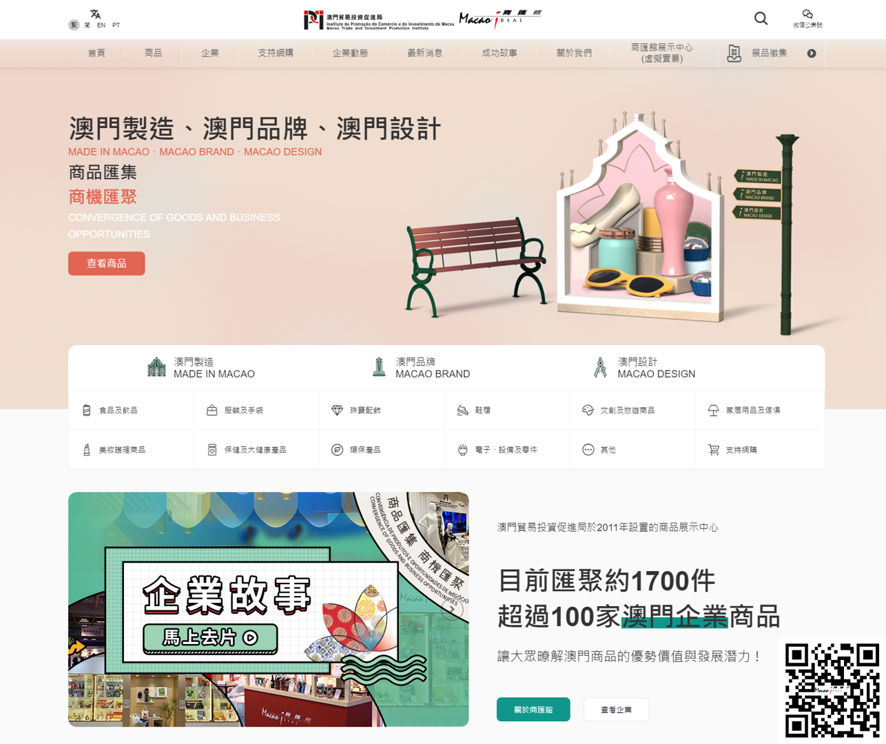 匯聚逾100間本地企業、近1,700件“澳門製造”、“澳門品牌”、“澳門設計”商品的澳門貿易資促進局商匯館網站(https://macaoideas.ipim.gov.mo/)全面升級,在多媒體內容基礎上重點增設線上虛擬實境(VR)展示、優化關鍵字搜尋及社交平台一鍵分享功能等,助海內外客商省時便捷地一站式瞭解澳門質優物美的產品。