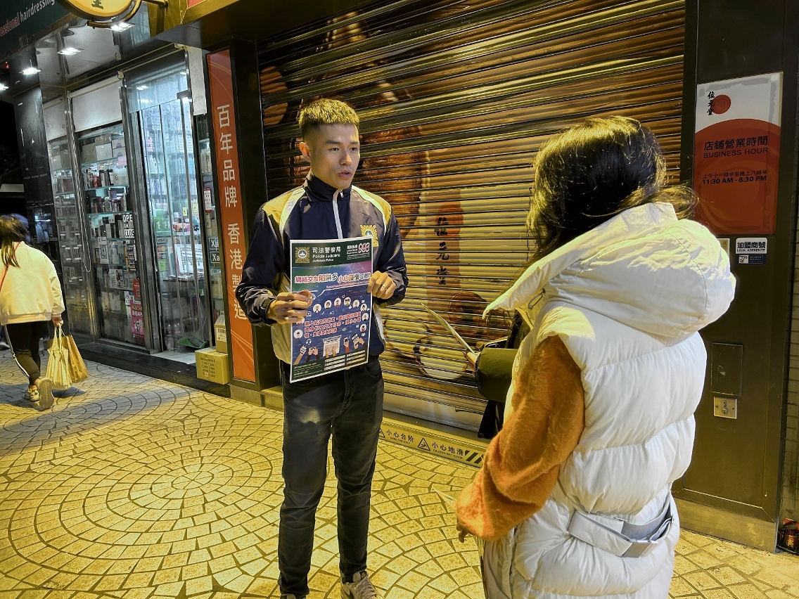 鑑於春節假期將至,青少年外遊或參與節慶活動的機會增加,受到不法分子侵害的風險亦相對提高,為防患於未然,司警局關注少年組聯同已加入“學校安全聯絡網”的學校代表、以及組織“社區安全青年領袖計劃”和“滅罪小先鋒種子計劃”學員,在澳門和氹仔區展開“警校聯合防罪巡查”工作,前往校園周邊和青少年聚集的地點巡查及宣傳防罪資訊,尤其提醒青少年防範毒品犯罪和電訊網絡詐騙,避免受到侵害。