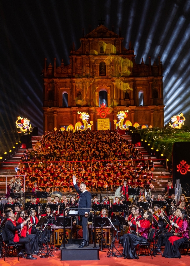 同場舉行了“歡樂春節 春滿濠江”音樂會,邀請到我國頂尖音樂家,包括斐聲國際的作曲及指揮家譚盾、國家一級指揮彭家鵬及鋼琴大師郎朗,攜手澳門樂團第一小提琴首席后則周、澳門中樂團琵琶聲部首席鄧樂、敲擊樂首席李暢,澳門中樂團、澳門少年合唱團、澳門羅梁體育總會等本澳藝文單位,在大三巴牌坊下呈獻節日氣氛濃厚的音樂作品,為全球民眾送上新春祝福。節目將於新春期間在文化和旅遊部的官方平台及合作渠道中播放,歡迎屆時收看。