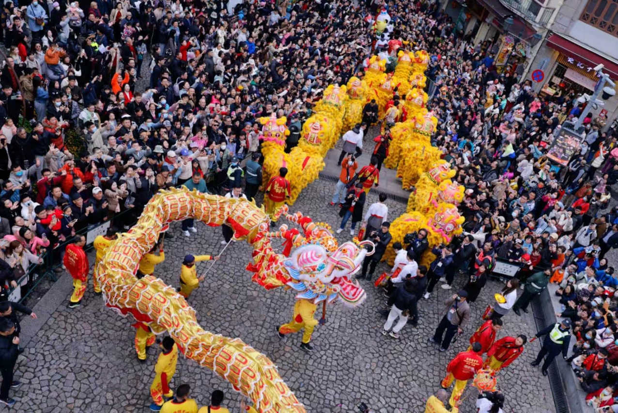 旅遊局於今(10日)農曆春節大年初一在大三巴牌坊及議事亭前地共同舉辦“歡樂春節─2024年龍騰舞躍賀新春”社區巡演活動,率先與澳門居民和旅客歡度春節。