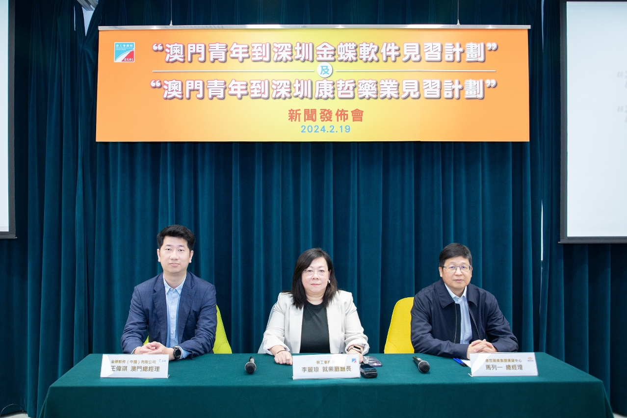 為配合特區政府積極推動“1+4”適度多元發展策略,優化產業結構而加快培養產業人才,勞工局與金蝶軟件(中國)有限公司(下稱“金蝶軟件”)及康哲藥業控股有限公司(下稱“康哲藥業”)合作,於2月19日分別推出“澳門青年到深圳金蝶軟件見習計劃”及“澳門青年到深圳康哲藥業見習計劃”,活動旨在讓澳門青年學習內地企業的先進經驗和科技知識,將所學應用到日後工作場景,拓展青年的就業發展空間。兩項見習計劃由2月19日至3月8日接受網上申請。