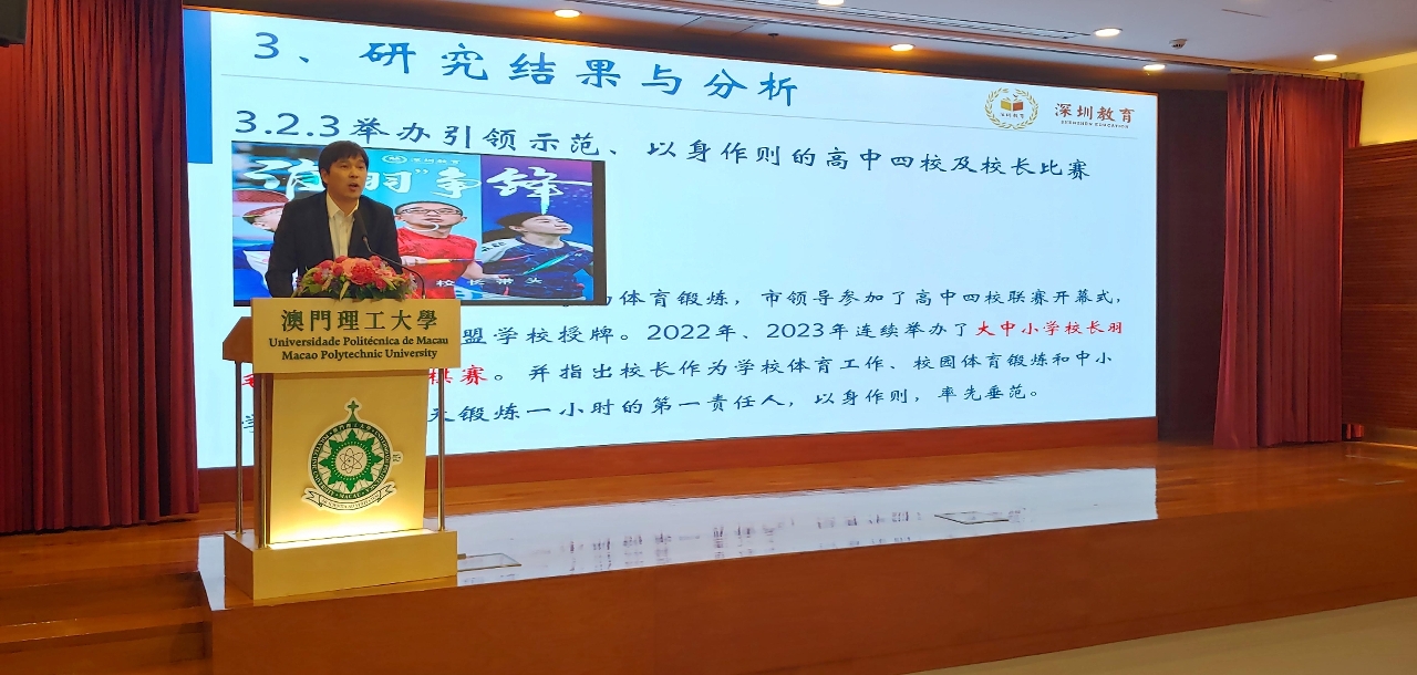 由廣東省教育廳、香港特別行政區政府教育局和澳門特別行政區政府教育及青年發展局合辦,澳門理工大學承辦的“粵港澳大灣區學界體育教育研討會”於2024年3月4日至5日在澳門理工大學順利舉行。主辦單位以“第一屆粵港澳大灣區學界體育比賽─乒乓球團體比賽”作為平台,把握粵港澳大灣區各城市的學校領導和體育教師在澳參賽之契機開展研討會,以推動粵港澳大灣區學校體育的創新和融合發展,不斷提高粵港澳大灣區學校體育產、學、研深度融合水平。