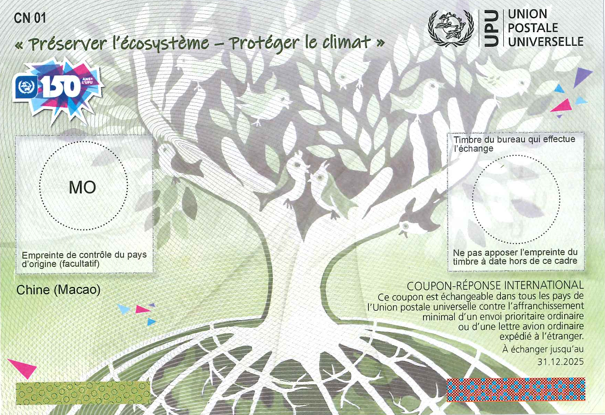 按萬國郵政聯盟之通知,郵電局將於二零二四年四月二日起開始發售新款國際回信劵 (請參閱下圖)。