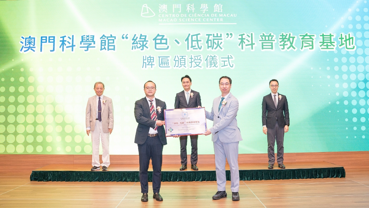 有關基地牌匾頒授儀式於3月26日在澳門科學館展覽中心舉行,在教育及青年發展局局長、澳門科學館股份有限公司股東會主席龔志明、中國城市科學研究會綠色建築與節能專業委員會主任王有為,以及中國綠色建築與節能(澳門)協會會長卓重賢的見證下,中國城市科學研究會綠色建築與節能專業委員會副秘書長戈亮向澳門科學館館長邵漢彬頒授“綠色、低碳”科普教育基地牌匾。科學館董事會、澳門科技大學、中國綠色建築與節能(澳門)協會、中國建築工程(澳門)有限公司、澳門建築業協會等代表出席儀式。
