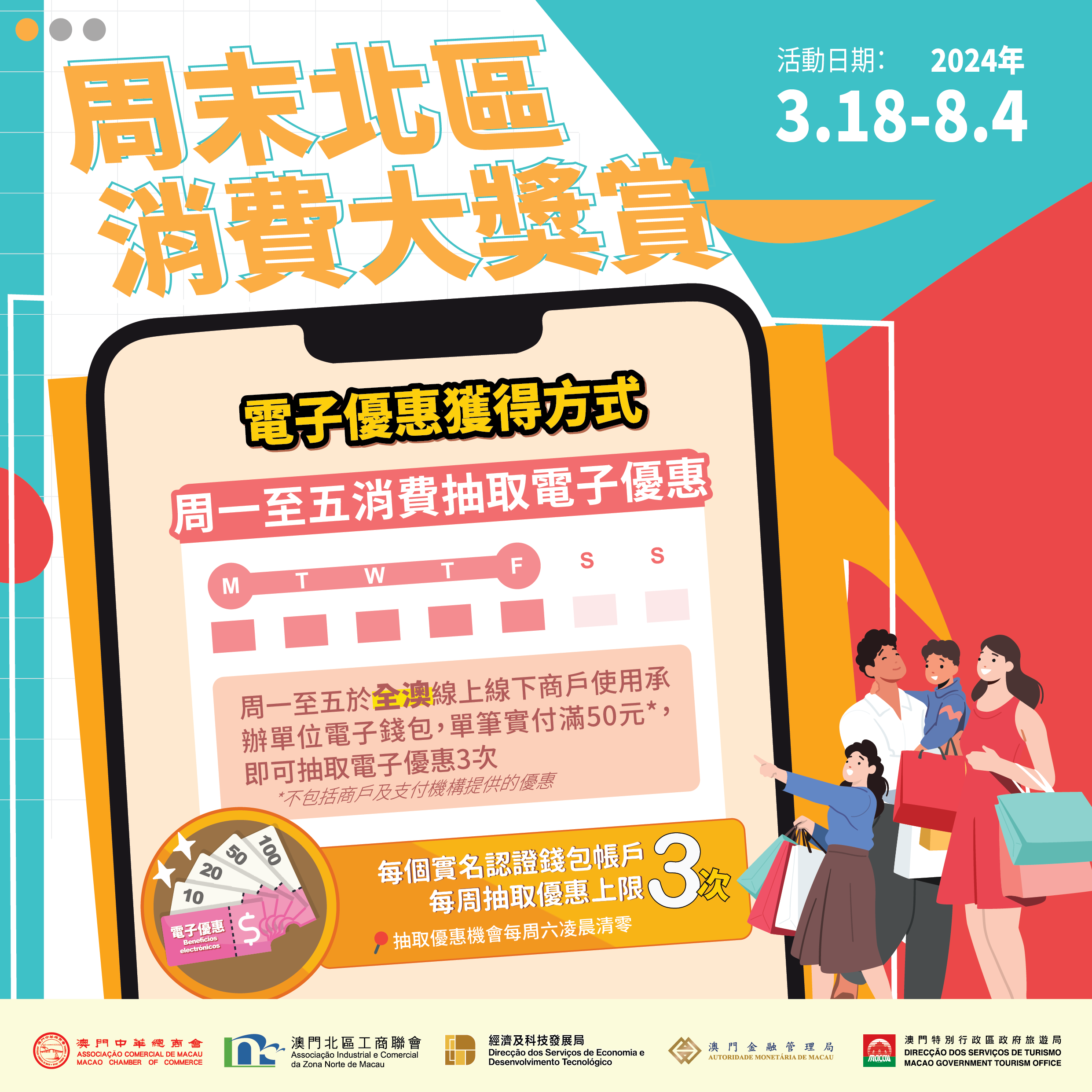 特區政府聯同澳門中華總商會、澳門北區工商聯會,於3月18日至8月4日期間合辦 “周末北區消費大奬賞”促消費活動。