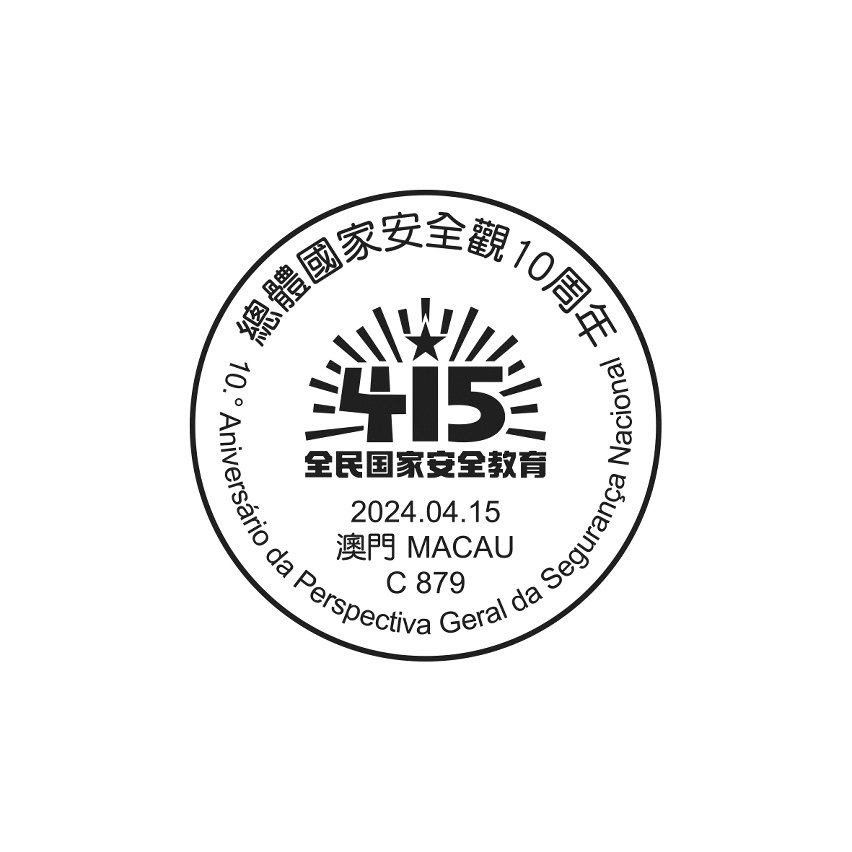 為慶祝總體國家安全觀提出10周年,郵電局特於二零二四年四月十五日上午九時至下午五時三十分,在郵政總局集郵商店設置臨時櫃台,為市民提供加蓋“總體國家安全觀10周年”紀念郵戳服務。
