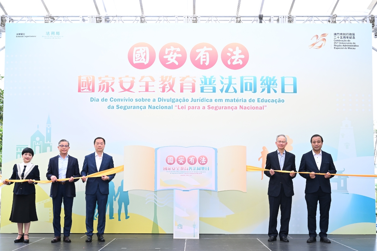 為慶祝中華人民共和國成立75周年及澳門回歸祖國25周年,法務局於今(20)日在氹仔花城公園側之空地舉行“國安有法”國家安全教育普法同樂日,以輕鬆、具趣味性的方式鼓勵大眾學習《維護國家安全法》,現場氣氛熱鬧,吸引逾500人次參與。
