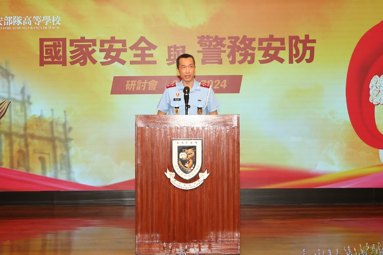 為築牢國家安全防線,進一步增強人員維護國家安全的意識和責任。於4月24日,澳門保安部隊高等學校(下稱“保安高校”)舉辦“國家安全與警務安防”研討會,研討會的開幕式由保安司司長黃少澤、警察總局局長梁文昌、澳門海關關長黃文忠和香港警務處助理處長王忠巡等主禮。來自中國人民公安大學、中國人民警察大學、中國刑事警察學院、廣東警官學院和香港警務處的專家學者在研討會中分享真知灼見和研究成果,為夯實國家安全作出貢獻。研討會除在校內舉辦外,亦在各保安部隊及保安部門設線上直播點,總參與人數共約440人。