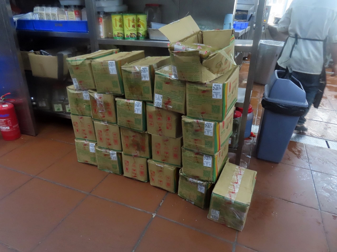 被查獲的過期餡料包括白蓮蓉、荔芋蓉、紅豆餡、綠豆餡,為銀河食品廠(地址: 澳門高利亞海軍上將大馬路41號激成工業中心第3期2樓S座及13樓X座),溫記粉面廠(地址: 慕拉士大馬路激成工業中心第3期2樓T座)共用,生產製作成包點,供應至二間下游食店,包括快秒小食店(地址:澳門黑沙環馬路35-A號慶運大廈地下B座)及開平佬南灣店(地址: 澳門羅保博士街22-A號金來大廈第3座地下K座 )。