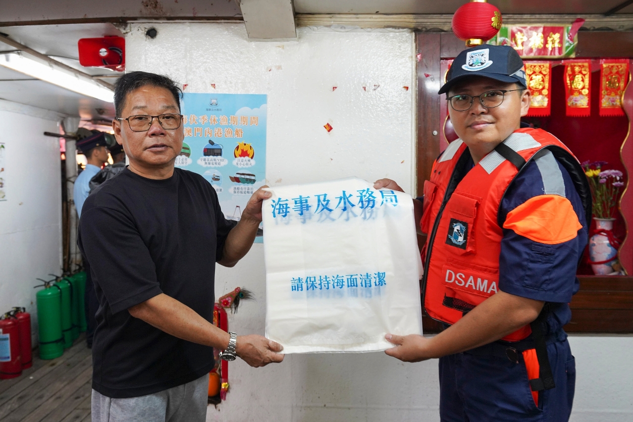 海事局今年繼續與漁民互助會合作收集漁船的生活垃圾,與業界合力共建清潔衛生的海上環境。漁民互助會在收集生活垃圾期間,亦會巡視錨泊在內港的漁船;如發現異常,會即時通報海事局或海關,以及時處理突發事件。