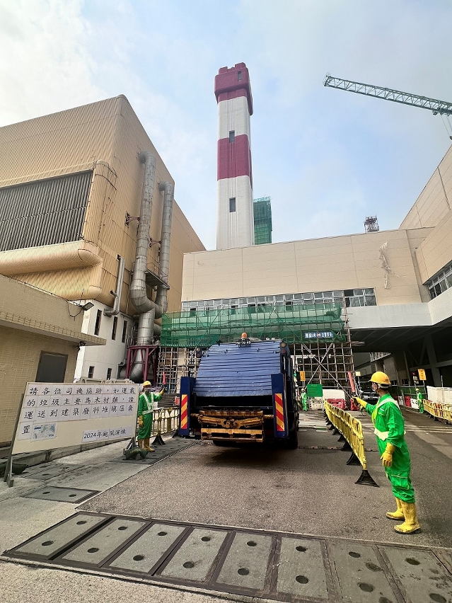 此外,模擬颱風過後市面出現大量垃圾需加快處理,環保局統籌垃圾焚化中心啟動全部焚化爐,在主門口設置分流告示牌並加派人手協調進廠車輛,優先處理生活垃圾和易腐爛的固體廢物,以及將木材類、大件金屬等固體廢物分流至建築廢料堆填區。同時在垃圾傾倒平台加派人手協助車輛盡快卸載,並設立起斗車和清潔專營公司車輛專用的閘門,以提高垃圾傾倒速度。另模擬建築廢料堆填區因須配合社區的垃圾清理工作而實施24小時對外開放的應變措施,以便及時接收和處理垃圾。