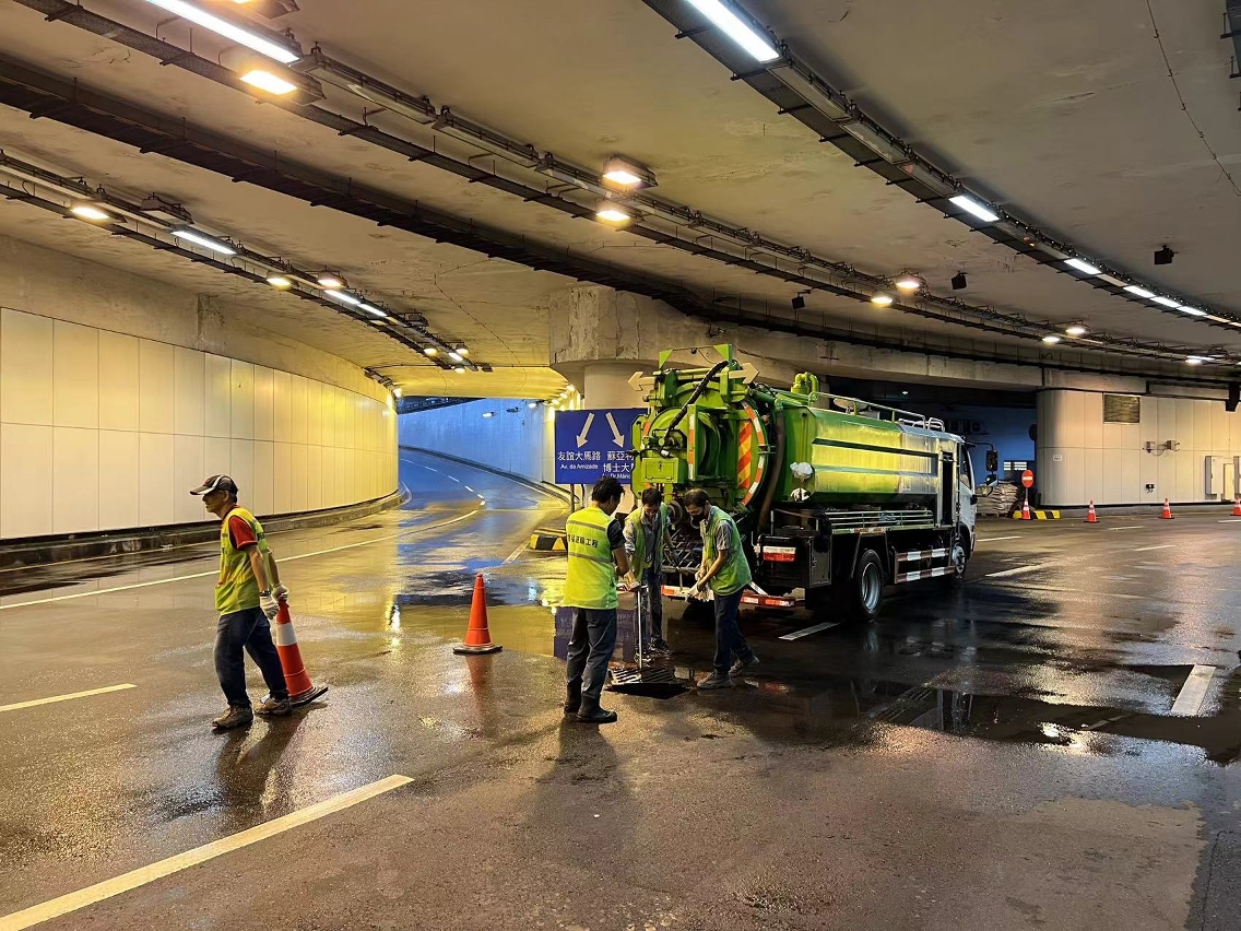 本澳天氣不穩,暴雨期間,市政署隨即啟動應變機制,在安全情況下,市政署持續派員到各低窪地區,清理沖積於渠口垃圾,以免堵塞渠道影響排水;並密切監察各泵房運作,適時調控,盡快排走積水。
