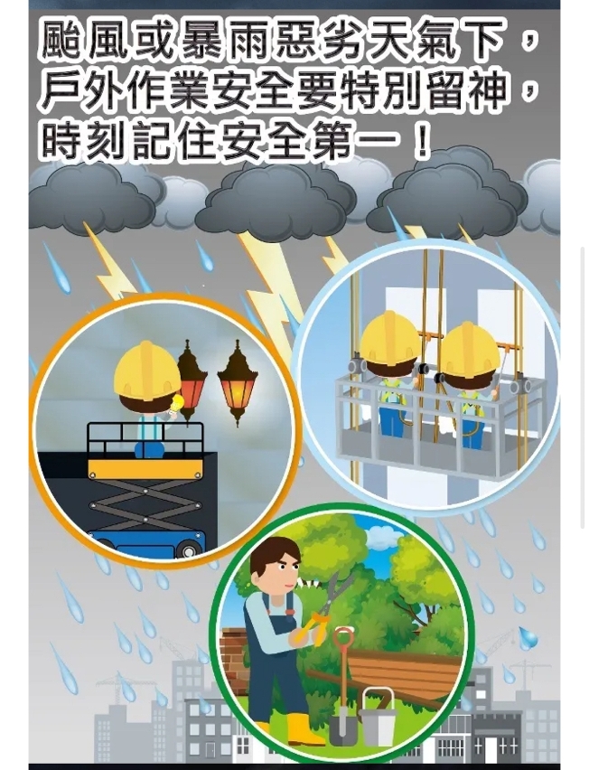 6. 工作期間留意氣象局所發出的最新天氣報告,因應天氣變化情況採取合適的措施。
