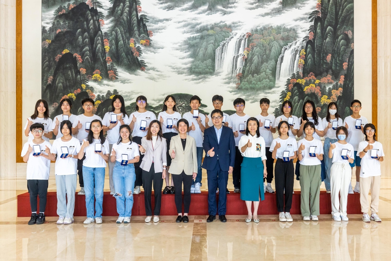 首屆文化局學生文化大使在澳門特別行政區政府文化局局長梁惠敏的帶領下,於今日(5月18日)拜訪中央人民政府駐澳門特別行政區聯絡辦公室,獲中央人民政府駐澳門特別行政區聯絡辦公室宣傳文化部部長萬速成及文體處處長白冰會見,期間雙方亦就計劃學習內容以及走進祖國內地探索寶貴文化遺產的計劃展開交流,萬速成勉勵學生從青少年時代起,時刻緊記習近平主席囑託,以實際行動踐行新時代新的文化使命。