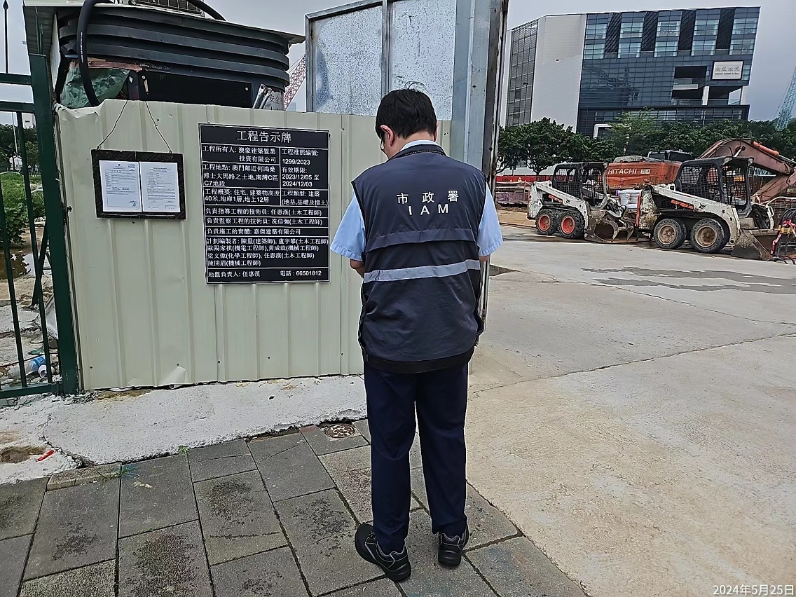 市政署日前巡查南灣區一地盤,發現有違規排污情況,已當場制止及作出檢控。市政署呼籲業界須檢視地盤廢水過濾設備,切勿把水泥漿等建築廢料排入公共下水道,合力保護渠網,避免影響雨水井和渠道的正常排放。