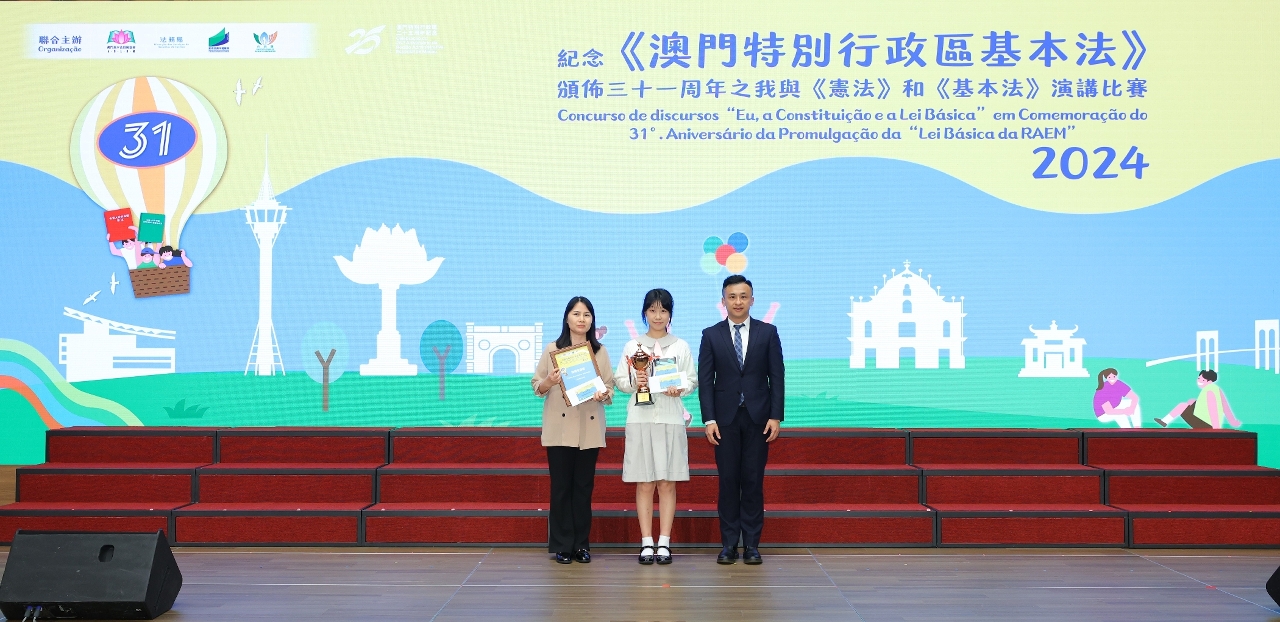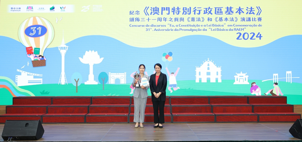 為持續向青年學生推廣《憲法》和《基本法》,澳門基本法推廣協會、法務局、教育及青年發展局和市政署聯合主辦的“紀念《澳門特別行政區基本法》頒佈三十一周年之我與《憲法》和《基本法》演講比賽”個人決賽及頒獎禮於5月28日在澳門科學館會議中心順利舉行。