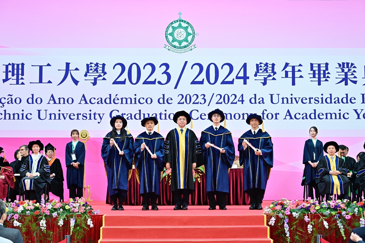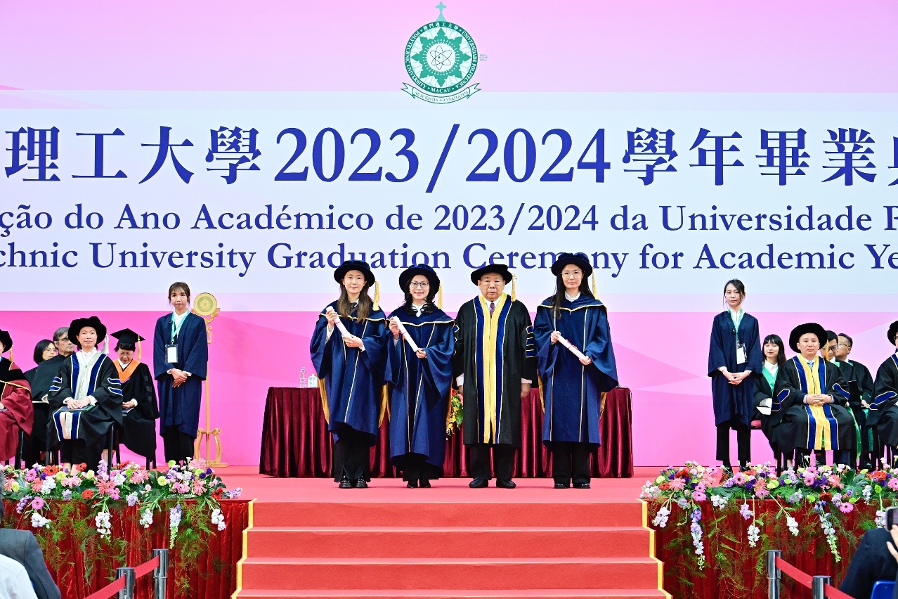 澳門理工大學2023/2024學年畢業典禮於今日6月7日下午四時在澳門理工大學體育館舉行,畢業典禮上升國旗、奏唱國歌,一千名博士、碩士及學士學位課程學生學成畢業。同場向學術成就卓著、對社會和教育發展作出重大貢獻人士頒授名譽博士學位。澳門特別行政區行政長官兼澳門理工大學校監代表、社會文化司司長歐陽瑜表示,澳理大在促進澳門經濟適度多元發展、大灣區科技創新走廊建設、大灣區葡語教育聯盟發展等重大建設中,更好發揮澳門高校的學術及科研力量。