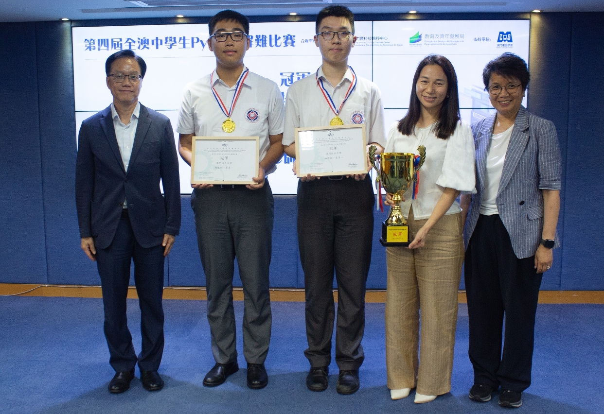 澳門生產力暨科技轉移中心於今(1)日舉行“第四屆全澳中學生Python解難比賽”頒獎禮。本次比賽吸引了超過150名學生參加,為歷屆最多。