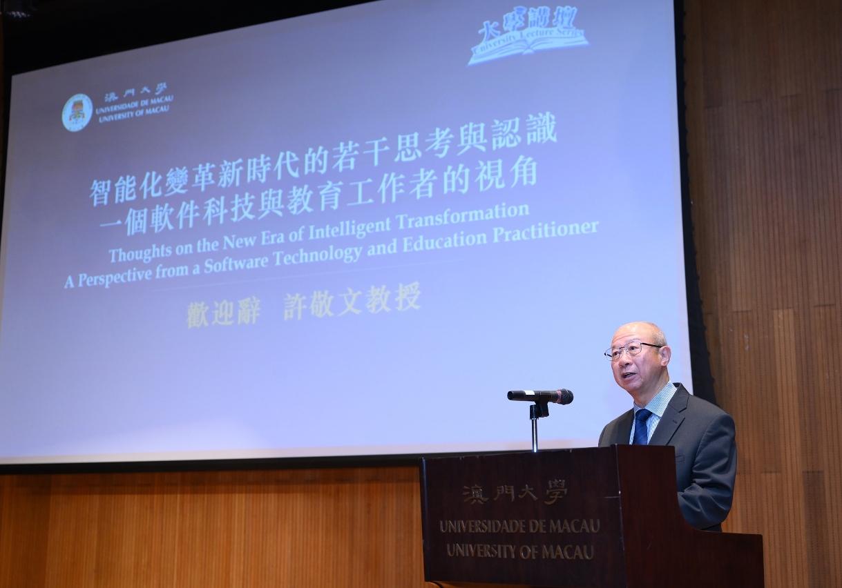 澳門大學今(24)日舉行“大學講壇”,由中國科學院院士、南京大學前校長及南京大學計算機軟件新技術全國重點實驗室主任呂建以“智能化變革新時代的若干思考與認識——一個軟件科技與教育工作者的視角”為題發表演說,以宏觀與微觀相結合角度分享其對智能化變革新時代的全面思考與認識。