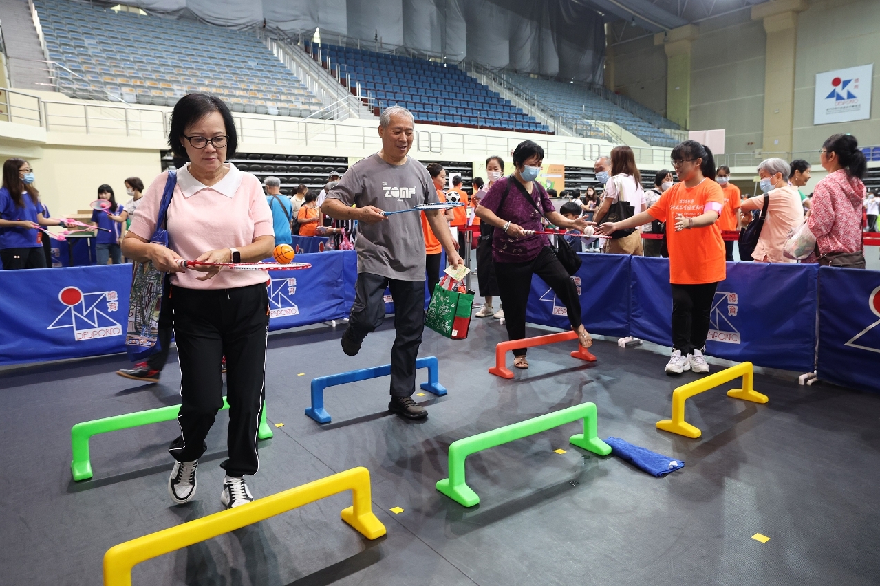 為熱烈慶祝中華人民共和國成立75周年及澳門特別行政區成立25周年,由體育局和澳門長者體育總會合辦、澳門街坊會聯合總會、澳門工會聯合總會、澳門婦女聯合總會和澳門理工大學長者書院協辦的“2024全澳長者運動日”,於今(18)日在塔石體育館圓滿舉行。現場設置多個康體項目及體質測試攤位,吸引一眾長者踴躍參與,共同體驗運動帶來的樂趣。