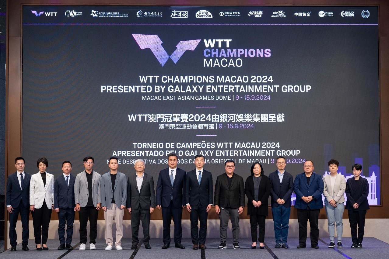 由澳門特別行政區政府體育局、WTT世界乒乓球職業大聯盟及銀河娛樂集團主辦、澳門乒乓總會協辦的「WTT 澳門冠軍賽2024由銀河娛樂集團呈獻」將於2024年9月9日至15日在澳門東亞運動會體育館舉行。一眾世界頂級乒乓球運動員將向市民和旅客展示精湛的球技,勢必上演連場激戰。