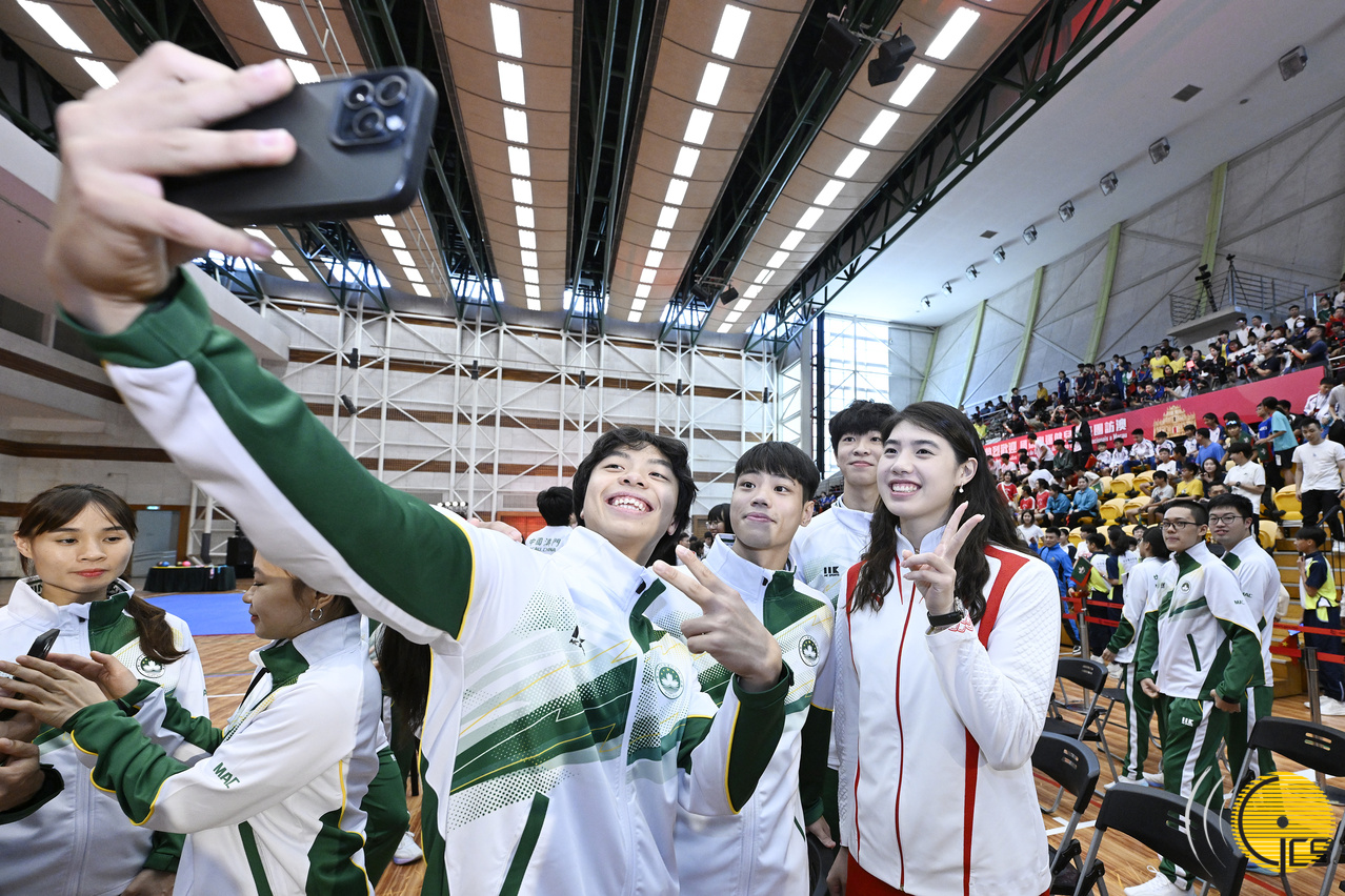 代表團一行上午10時30分出席在奧林匹克體育中心室內體育館舉行的“國家奧運健兒與澳門青少年運動員真情對話”活動,向在場600名本澳精英和集訓隊運動員、青年學生分享自身經歷,以及訓練過程的點點滴滴,並與澳門運動員進行了乒乓球和藝術體操互動交流,國家奧運健兒勉勵本澳運動員及青年要有拼搏、堅毅不屈的精神。其中,8名運動員包括馬龍、全紅嬋、曹緣、潘展樂、馮雨、郭崎琪、劉洋及李倩,與本澳運動員代表王泳欣、陳珮琳、方文浩、梁盈嵐,及現場學生和運動員真情對話,分享在奧運會奪獎、為國爭光的喜悅。