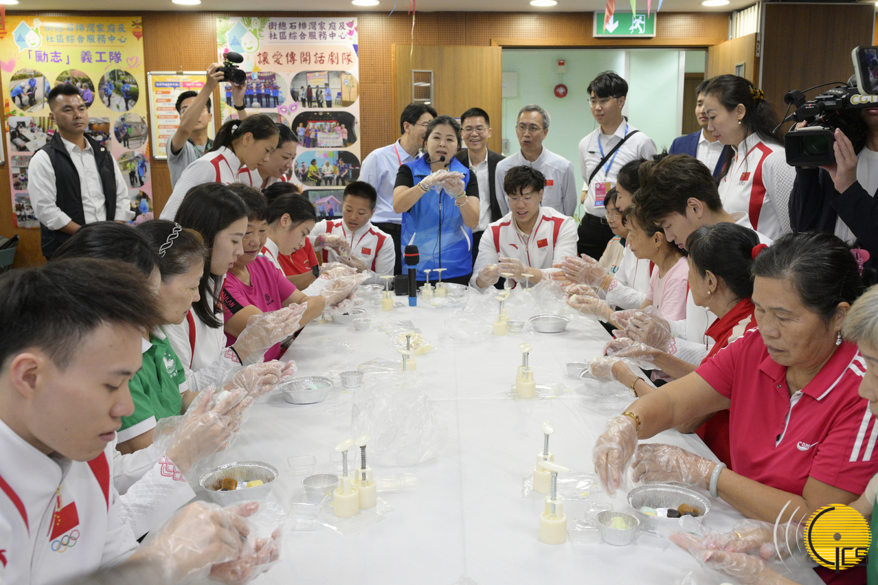代表團成員分成三隊,於上午10時分別探訪工聯氹仔湖畔綜合服務中心、婦聯樂滿家庭服務中心、街總石排灣家庭及社區綜合服務中心。期間,運動員參觀了社會服務機構的設施,並與市民展開親切交流和互動。此外,還與市民玩遊戲、對打乒乓球、製作燈籠和月餅等,向澳門廣大市民送上愛心、節日問候及關懷。現場市民把握機會爭相與運動員合照,他們心情激動地表示,能一睹國家奧運健兒的風采,感到興奮、鼓舞及驕傲。