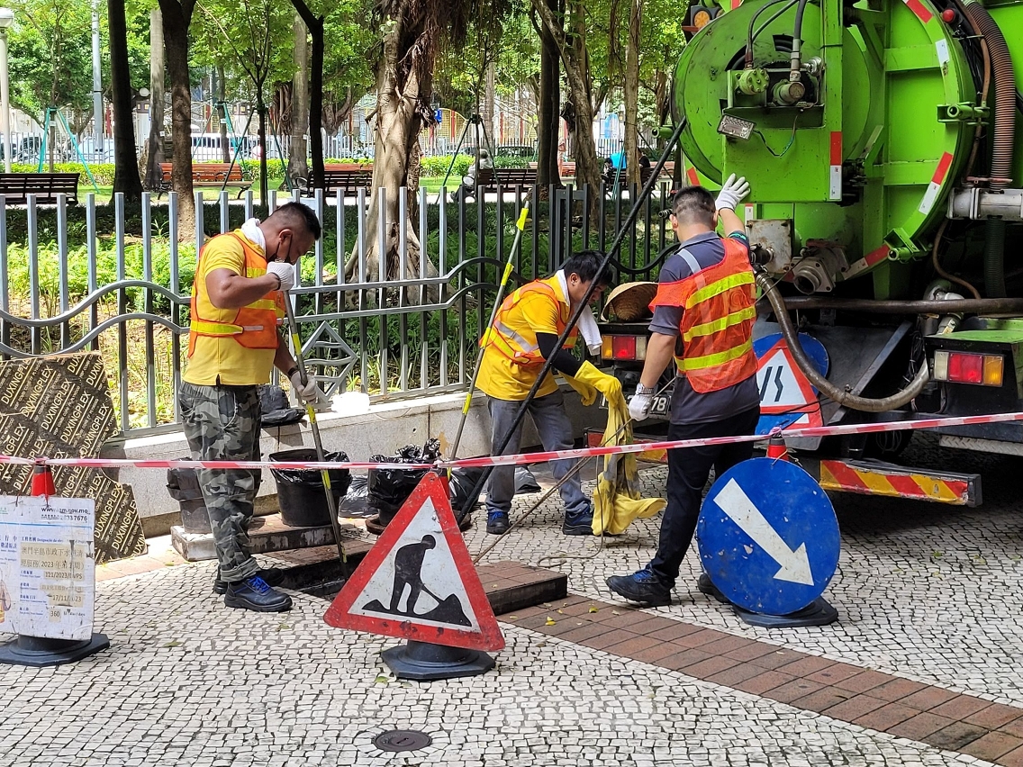 因應颱風“摩羯”迫近本澳,氣象局預料風力將會增強,雨勢將趨頻密,市政署除持續加強各區下水道疏通及檢查渠網、泵房外,近期亦針對低窪及個別水浸易發點,包括新橋區、內港區、下環區、氹仔舊城區等加密排查和清理;今年8月單月已清理下水道逾2萬米,於下水道清出的污物量超過87噸。同時,亦已對個別箱涵渠開展專項清淤,包括完成城市日大馬路、望德聖母灣及氹仔孫逸仙博士大馬路雨水箱涵渠清理,現時亦正有序對林茂雨水箱涵渠進行清淤,保障雨水排水系統的運作效率與穩定性。